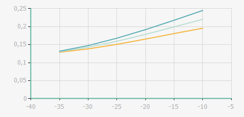 蒸發(fā)溫度 | 制冷量+/-5% | 能耗+/-5% | 現(xiàn)在能效+/-5% | 氣體流速+/-5% | 能效+/-7% | ||||